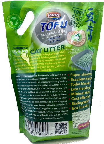 Tofu - nyövényi alapú, zöld tea illatú macskaalom (2,5kg)